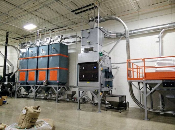 - Tubular drag Chain-Vey conveyor implementation throughout the facility to move all coffee (green, whole bean, and ground) while keeping the coffee enclosed