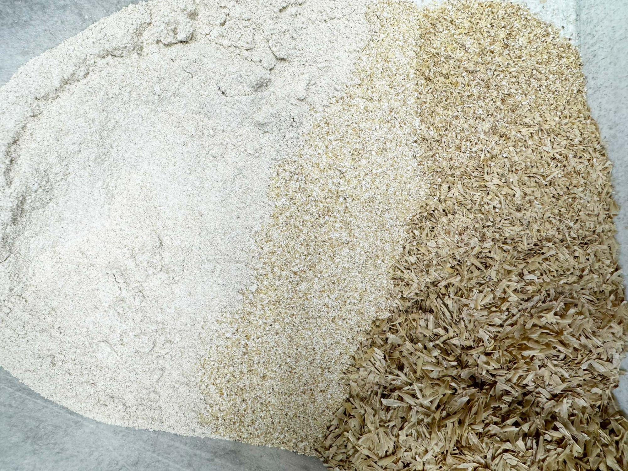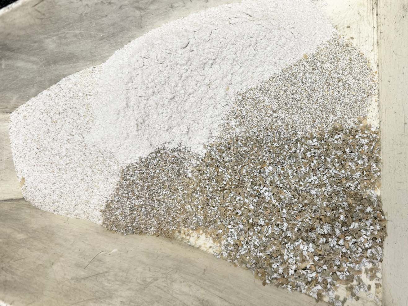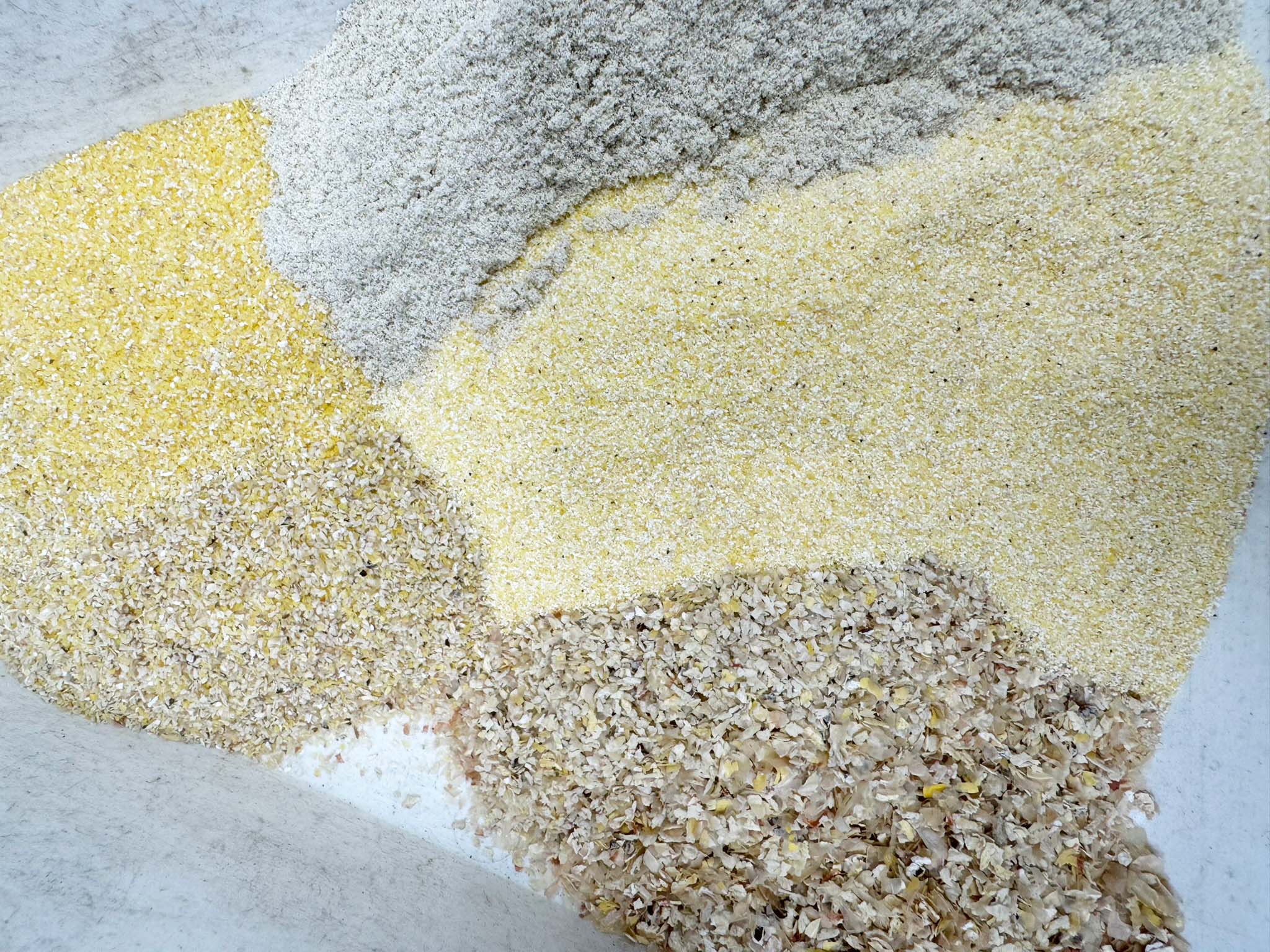 One corn sample ground with a cage mill (control), and two corn samples ground with an MPE Gran-U-Lizer. Both MPE samples emulate the cage mill grind, but with the option of more or fewer fines.Rye