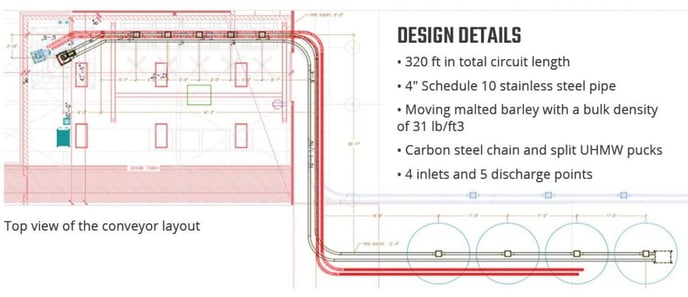 It’s not all too uncommon when walking through grain processing areas of craft breweries to see an old PVC pipe covered in a patchwork of duct-tape and thin sheet metal. Awkwardly suspended between two pieces of equipment, the conveyor limps along leaking product from the most recent wear point, or weak patch, accumulating on the floor.